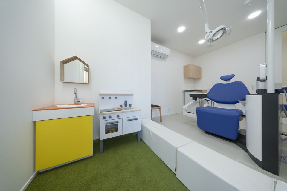 完全個室を1部屋設けています。治療の説明や話す内容を他人に聞かれたくない方や周りの患者さんのキーンという削る音が苦手な方にも落ち着いて治療を受けて頂けます。 なお、個室内にキッズスペースも設けているので小さいお子さんを連れての来院も安心いただけます。